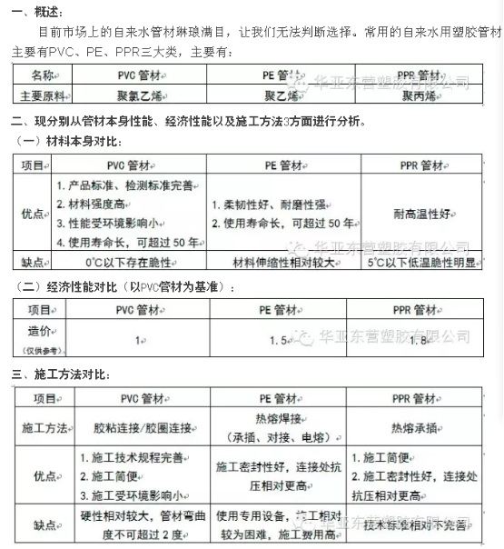 PVC、PE、PPR自來水用管如何選材