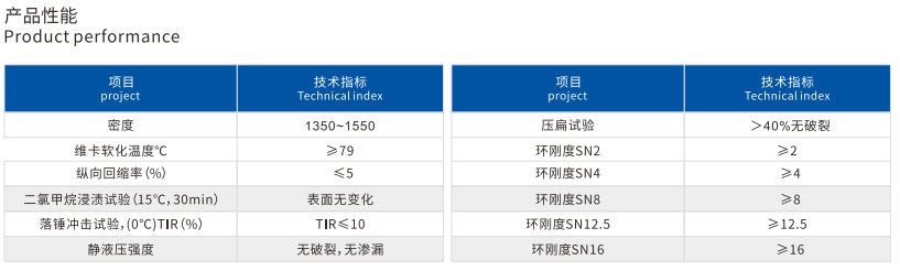 管(guǎn)材為實壁管,能夠承受--定的內壓和外壓,低壓設計保證了產品可以適應滿盈情況(kuàng)下排(pái)汙排水的應用要求,提高長期運行安全(quán)性。拉伸強度,抗壓強度,抗衝擊力遠遠優於常見的管道材料。管材具有一定的柔(róu)韌性,接口為柔性接口,軸向撓度高於其他排汙管,可以適應一定程度的不均勻沉降(jiàng);柔性管通過埋地後的管土共同作用其剛度遠高於剛性管。管材采用鋼骨架--體成型膠圈連接,其使用(yòng)壽(shòu)命與管材同步,連接可靠,密封性好(hǎo),保證了整個管道係統50年以上的使用壽命。化學穩定性極高,在60°C以下可耐各種酸堿鹽機有機溶劑,不需要做防腐處理。