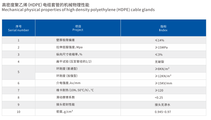 用於以高密度聚乙烯(xī)樹脂(zhī)(HDPE)為主要原料,經過配料混合,擠出成型而製成用於地下用電力電(diàn)線電纜、通信電纜、光纜套管,電力電纜線(xiàn)路中(zhōng)電纜穿入其中後受到保護和在發生(shēng)故障後便於將其中電(diàn)纜拉出更換用的(de)管。